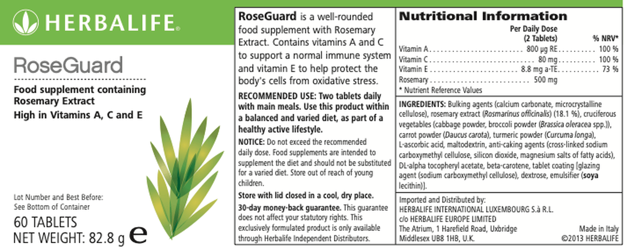 - RoseGuard is a food supplement providing Vitamin A, C and E.